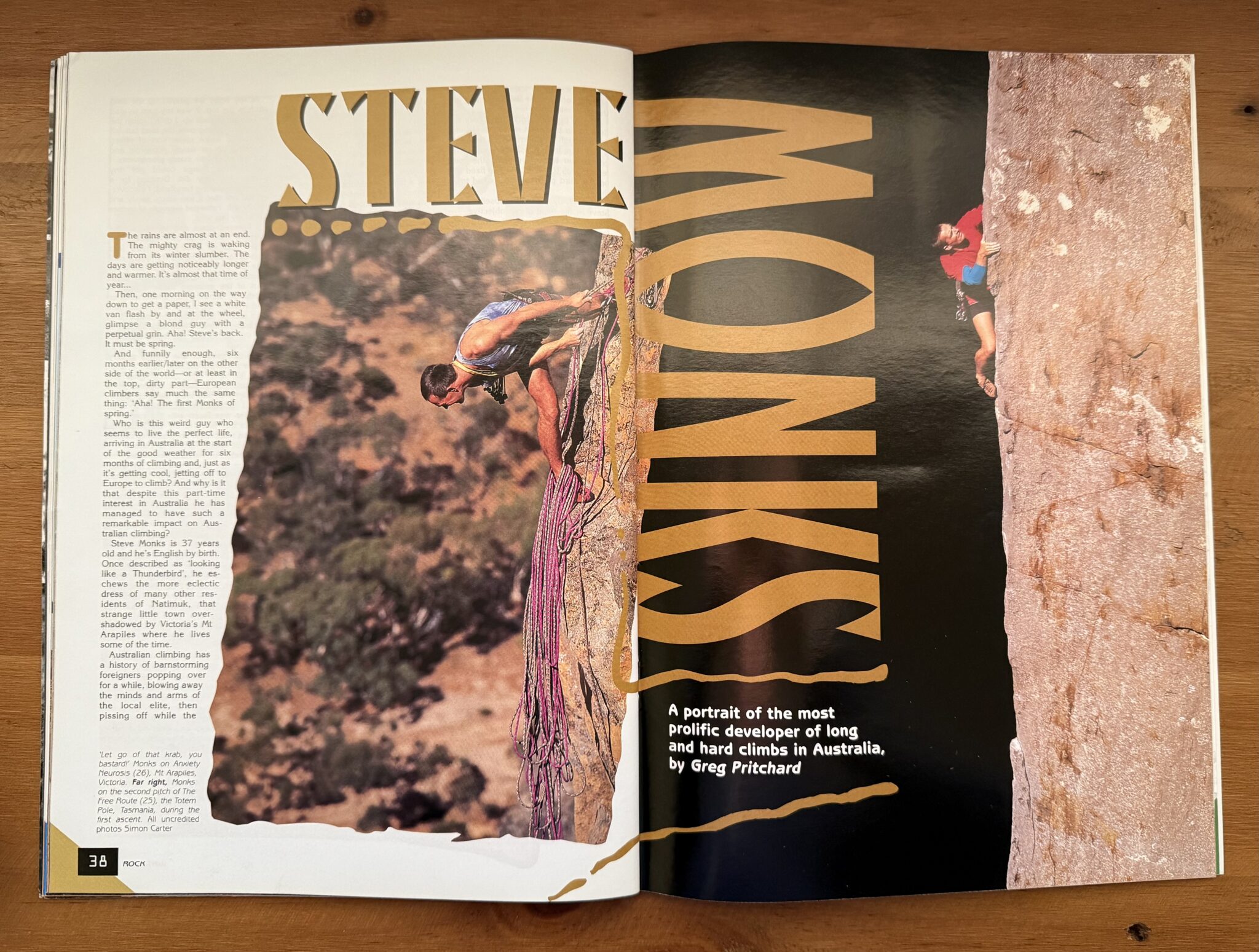 A portrait of Steve Monks, the most prolific developer of long and hard climbs in Australia, by Greg Pritchard
