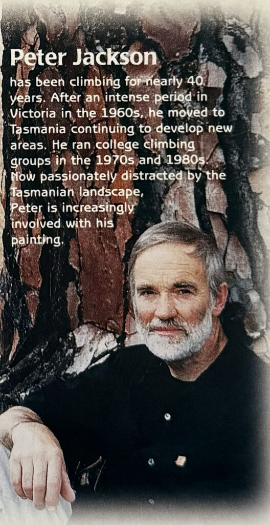 Peter’s pioneering of new crags and climbs started in the 1960s ‘golden era’ of Victorian climbing, and continued throughout the 70s, 80s and 90s in Tasmania. He carried a vision that