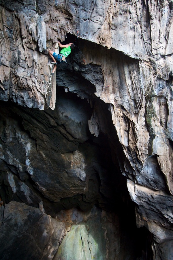 Left: Alex Giblin on Samurai 5B (17), Tamarind Village Right: Vincent Chen inside Anxiety State Crisis Cave