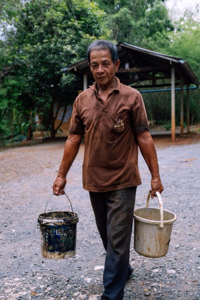Not enough emphasis is given to the locals that are the stewards to this crag. Loong Naan, a Progression Red truck driver, has been working to bring climbers to the crag for around 20 years. In the hours waiting for his climber clients to return from the crag he proactively decided to build structures to make the area more comfortable. Using just a plough, a machete and his own coarse hands Loong Naan has built belay steps, trails, gazebos and shelters fuelled by nothing other than an enthusiasm for the area.
