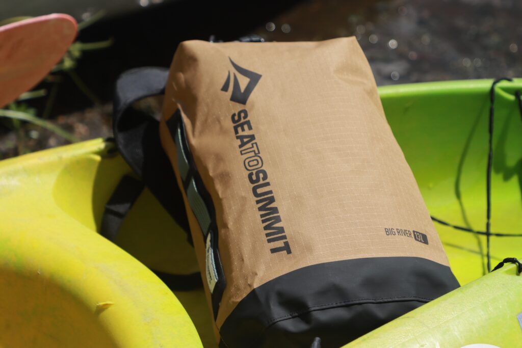 For canyoning days or multi-day canoe adventures, I prefer using the Sea to Summit Big River Dry bags.  They are designed for more rugged terrain with a heavy-duty 420D ripstop nylon fabric and triple coated base, which makes them puncture and abbrasion resistant.