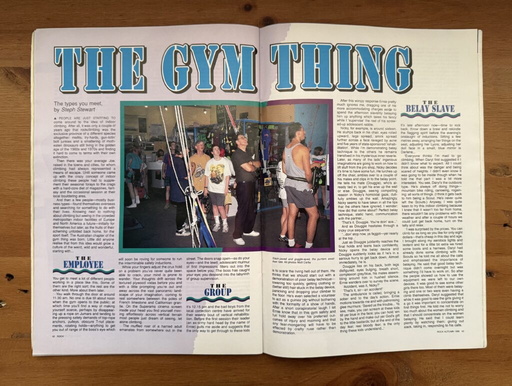 This article drops right into that moment — when indoor walls were just starting to creep across Australia, bewildering the old guard and hooking a whole new breed of climbers. It’s raw, it’s cheeky, and it’s a snapshot of the sport on the cusp of a cultural shake-up.